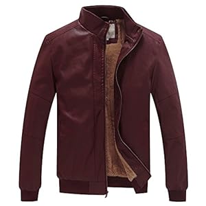 WenVen Men’s Stand Collar Fleece Lined Bomber Faux Leather Jacket