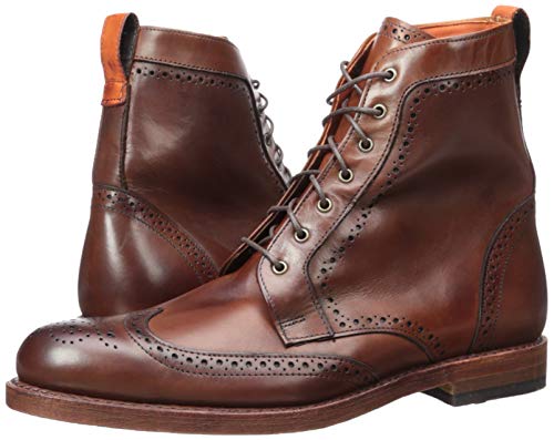 Lace up blucher dress boots. Wingtip boot with Brogue perforations and medallion. Pairs perfectly with blue jeans and slacks. Classic Fit, fits true to size