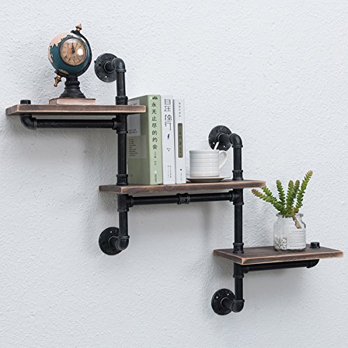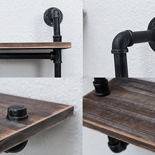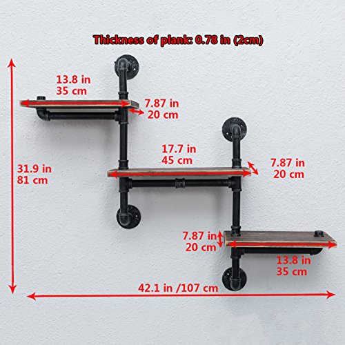 【Industrial Style】:This wall shelf consists of wrought iron pipes and baking finish reclaimed wood. The unique manufacturing process can add vintage steampunk style to the place of use.