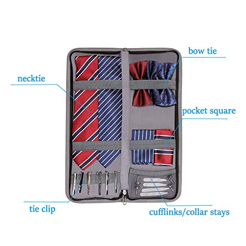 Modoker Mens Gift Tie Case for Travel Necktie Carrier Organizer Bag Storage Cufflinks and Suit Accessories, Grey